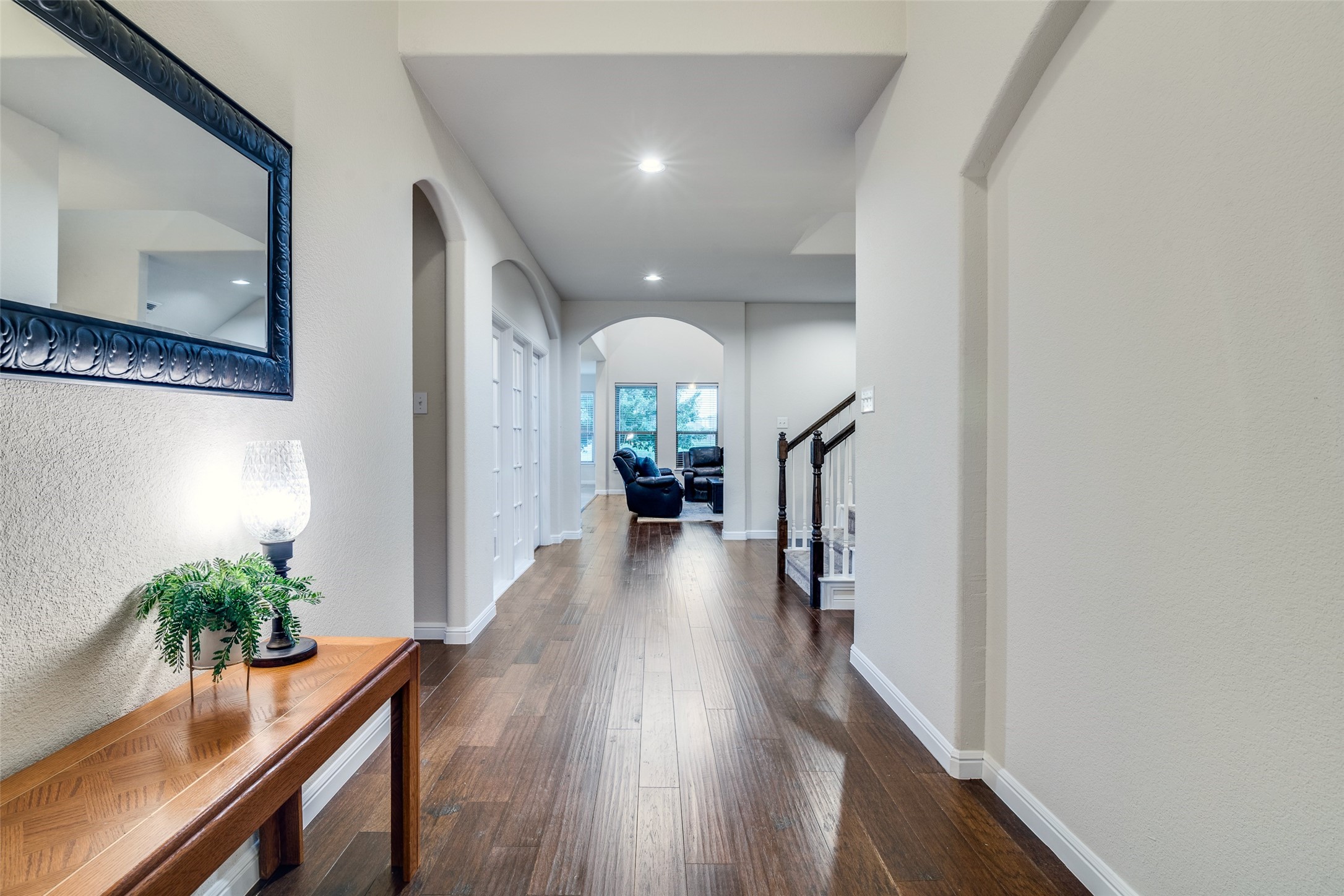 You've found the perfect combination of LIVING SPACE, LIFESTYLE, and LOCATION in this beautiful 4 bedroom home that fits the whole family with an OPEN, FLEXIBLE FLOOR PLAN on an OVERSIZED CORNER .31 ACRE LOT with a GREENBELT view, ideally located in a peaceful neighborhood, and just minutes from 190! The impressive curb appeal and entry welcome you to gorgeous wood flooring, soaring ceilings, and a VERSATILE floor plan with the primary suite, 1 bedroom and full bath, plus dedicated OFFICE with french doors downstairs, and 2 large bedrooms plus GAMEROOM and MEDIA ROOM upstairs. Kitchen boasts double ovens, plenty of cabinets, GAS cooktop, large pantry, island with room for extra barstool seating and entertaining, and dining space for a large gathering. Primary suite is a true secluded retreat with a sitting area looking out ample windows to the backyard, garden tub, 2 separate vanities, and a huge closet. There's tons of room upstairs with a gameroom big enough for a TV area plus pool or ping pong table, separate media room with a closet, 2 spacious bedrooms, and 2 full baths, and you'll have lots of storage options plus a 3 CAR GARAGE. Enjoy serene outdoor living on the covered patio with a view to vast green space and your own piece of Texas sky and plenty of space to play, garden, and create the OASIS you've been dreaming of. Located near the conveniences of shopping and restaurants with easy access to 190, 75, and Firewheel Mall, this one is truly a SHOWSTOPPER!